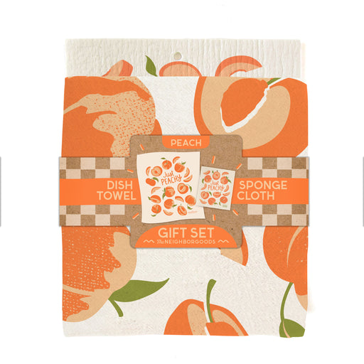 Peach Dish Towel + Sponge Cloth Gift Set
